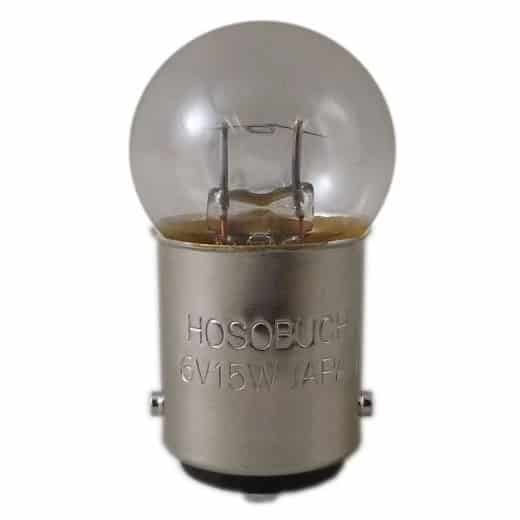 HOSOBUCHI incandescent bulb 6V 15W double contact bayonet BA15d cap. Often found in microscope, medical and inspection equipment.